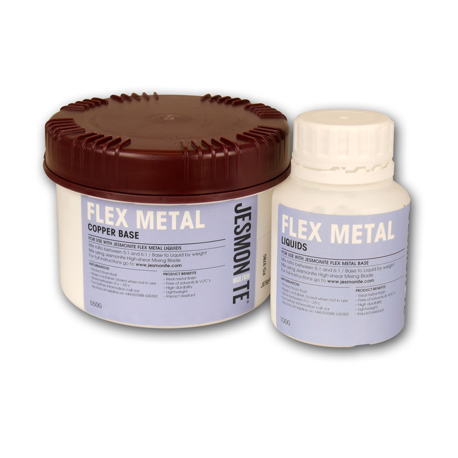 Jesmonite Flex Metal Gel Coats are the latest development in Jesmonite materials. They are formulated using real metal powder to create the ultimate replication of metal in moulded materials. They are four finishes available and they are fully compatible with AC730 as a cast or laminated back up.