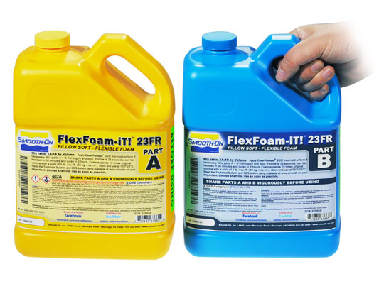 Las espumas de la serie FlexFoam-iT!™ son espumas flexibles sopladas con agua de primera calidad que se pueden utilizar para una variedad de proyectos industriales, de efectos especiales, de arte y manualidades. Con varios para elegir, los usos incluyen la fabricación de accesorios teatrales (espadas, cuchillos, martillos, etc.), juntas industriales, acolchado y amortiguación personalizados, y más. Se pueden agregar colorantes SO-Strong™ para efectos de color. Los líquidos de las partes A y B se combinan, se mezclan y se vierten en un molde u otra forma (aplica agente desmoldante si es necesario). La mezcla subirá y curará rápidamente hasta formar una espuma sólida y flexible. Las espumas varían según la densidad y ofrecen buenas propiedades físicas.