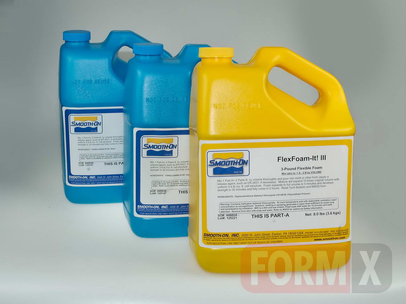 FlexFoam-iT ™ III es la espuma de menor densidad y la que más se expande. Los líquidos de las Partes A y B se combinan, mezclan y se vierten en un molde u otra forma (aplique un agente desmoldante si es necesario). La mezcla se elevará y curará rápidamente hasta convertirse en una espuma sólida y flexible. Las espumas varían según la densidad y ofrecen buenas propiedades físicas.