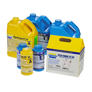 FlexFoam-iT ™ III es la espuma de menor densidad y la que más se expande. Los líquidos de las Partes A y B se combinan, mezclan y se vierten en un molde u otra forma (aplique un agente desmoldante si es necesario). La mezcla se elevará y curará rápidamente hasta convertirse en una espuma sólida y flexible. Las espumas varían según la densidad y ofrecen buenas propiedades físicas.