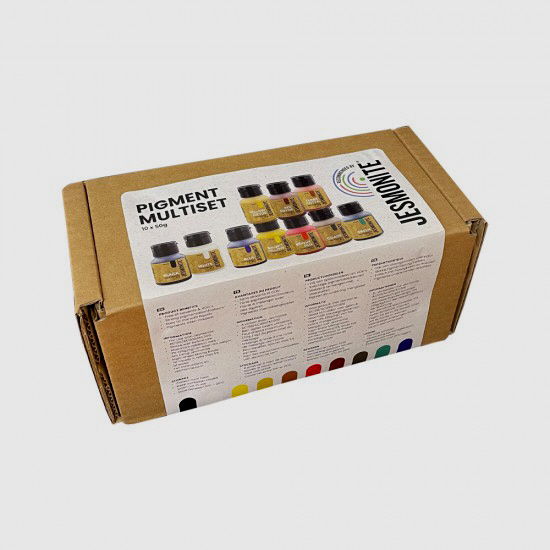 El set de pigmentos Jesmonite de 50g en 10 colores ofrece una rica selección de pigmentos vibrantes, diseñados específicamente para su uso con materiales Jesmonite. Aquí tienes una descripción detallada: