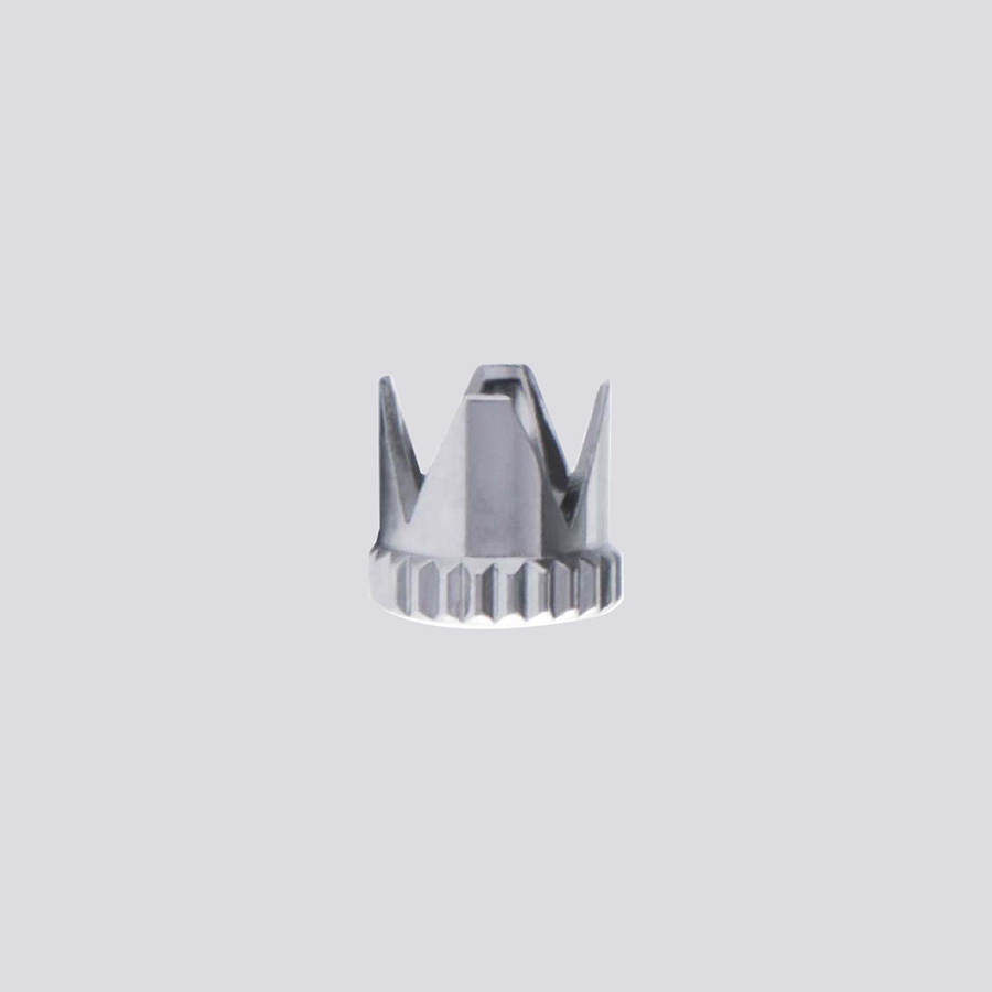 En resumen, la tapa de aire con diseño de corona está pensada para evitar acumulaciones, mejorar el flujo de aire, permitir mayor proximidad, y brindar un control superior en trabajos detallados con bordes suaves. Es una excelente opción para tareas de aerografía que requieren máxima precisión.