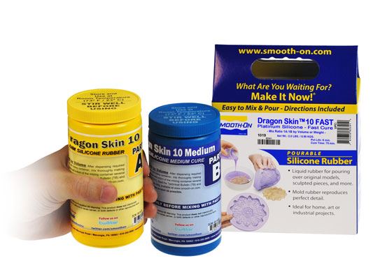 Dragon Skin Medium es una silicona de curado de platino de consistencia gelatinosa y translucida. Tiene 20 minutos de trabajo y endurece a las 5 horas. Es muy blanda, elástica y muy resistente a la rotura, se utiliza en moldes y efectos especiales en la fabricación de prótesis y animatrónicos. Se mezcla en volúmenes iguales y tiene una dureza: Shore A/10. A+B= 0,9 kg.