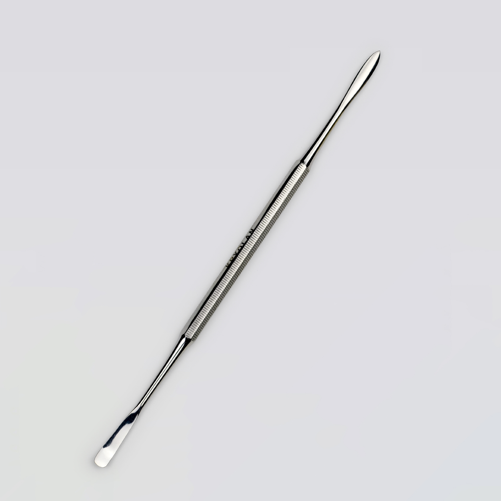 Espátula para mezclar maquillaje hecha de metal. Ideal para una mezcla y toma higiénica de diversos productos antes de su aplicación como bases, labiales u otros